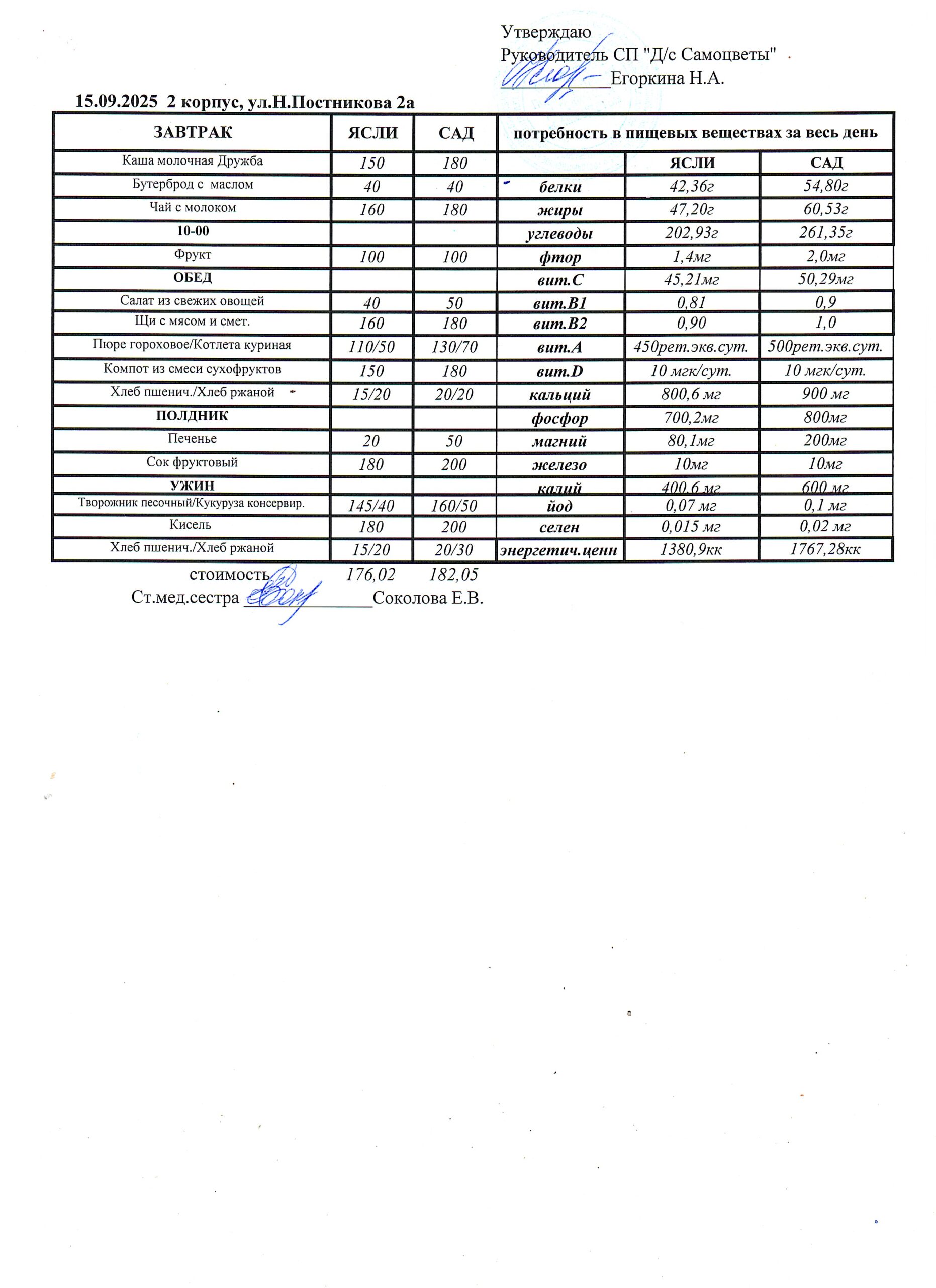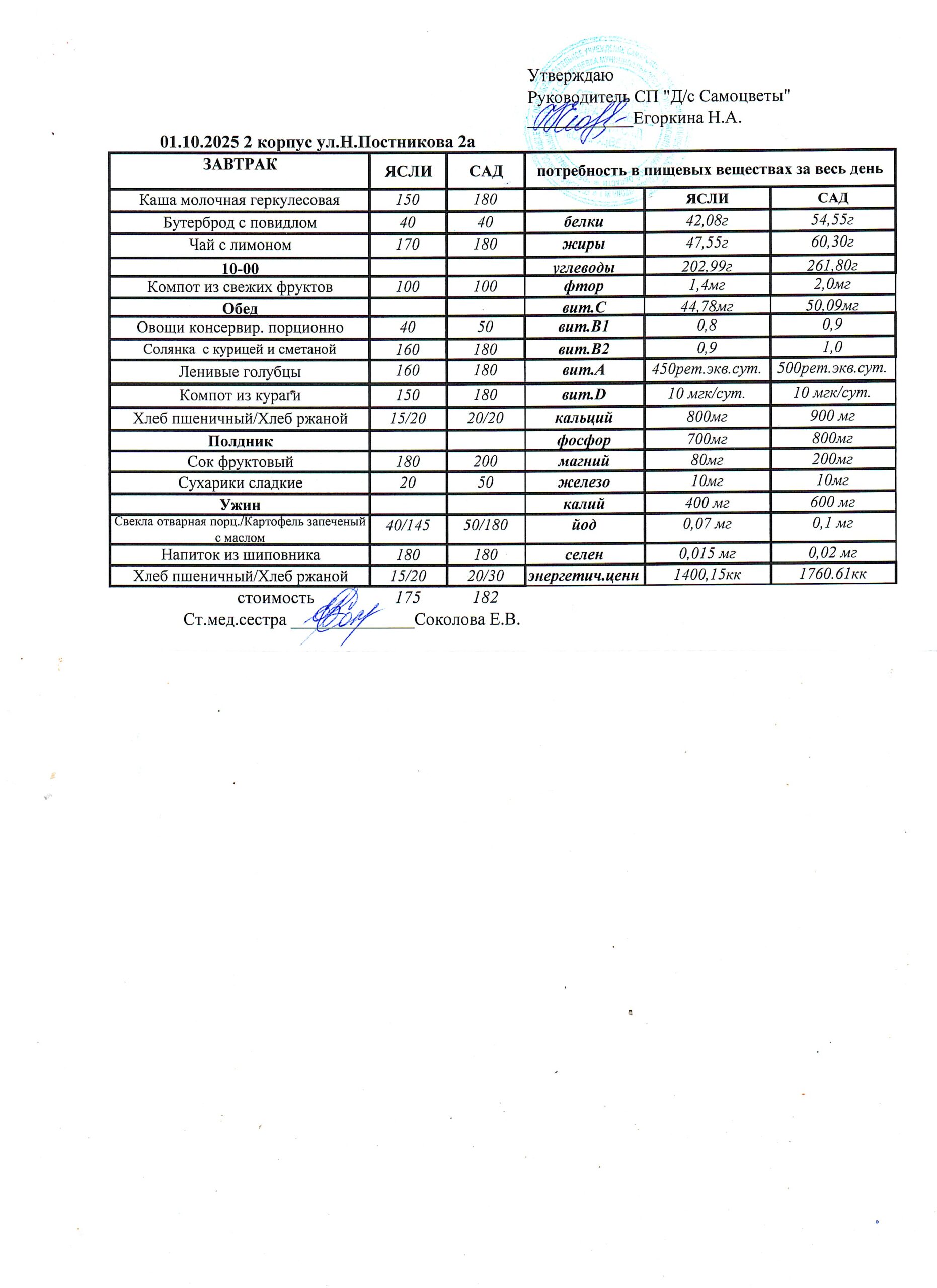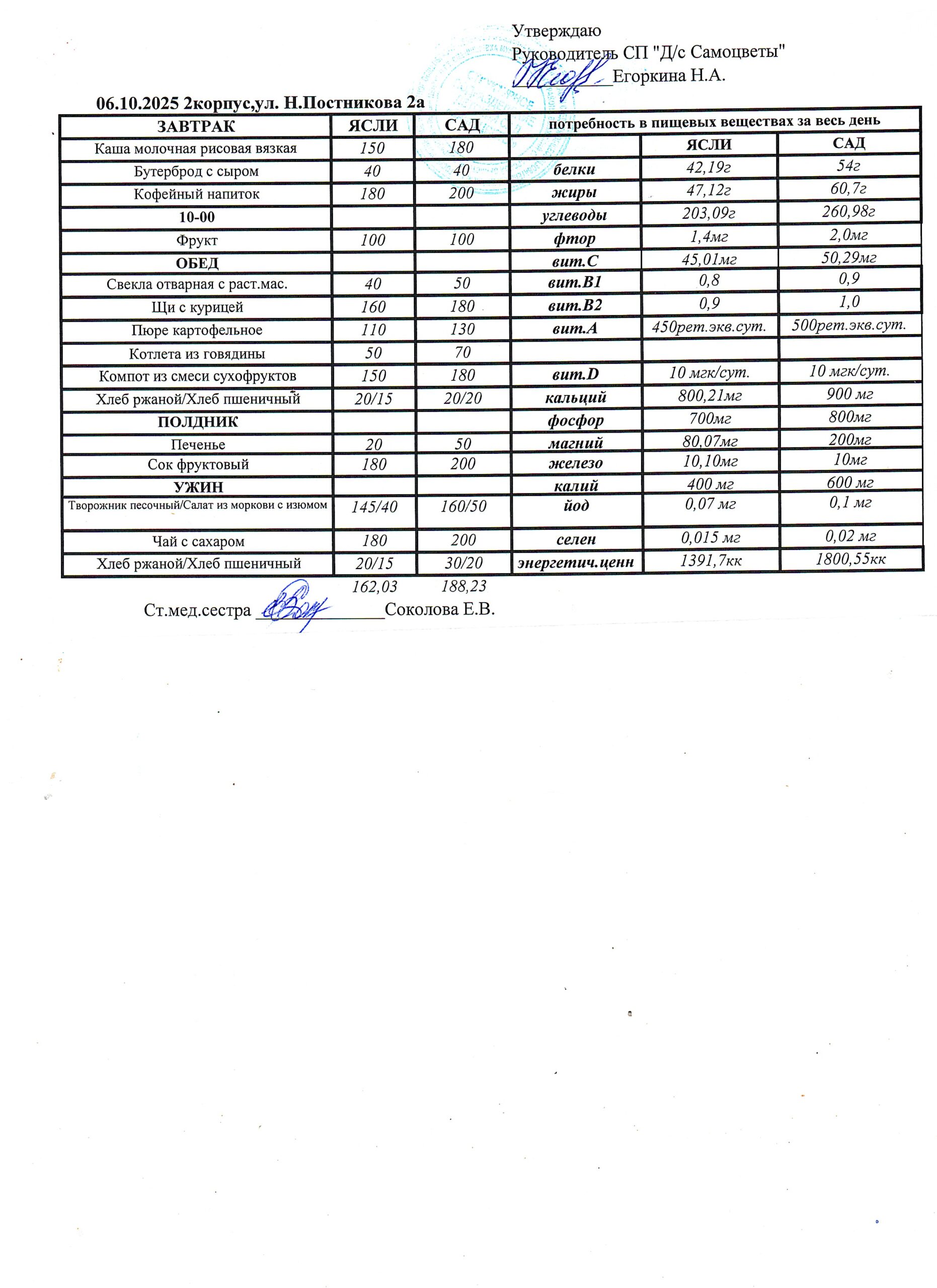 - октябрь 2025 год сп «Детский сад «Самоцветы» ул. Нестера Постникова 2а, корпус 2