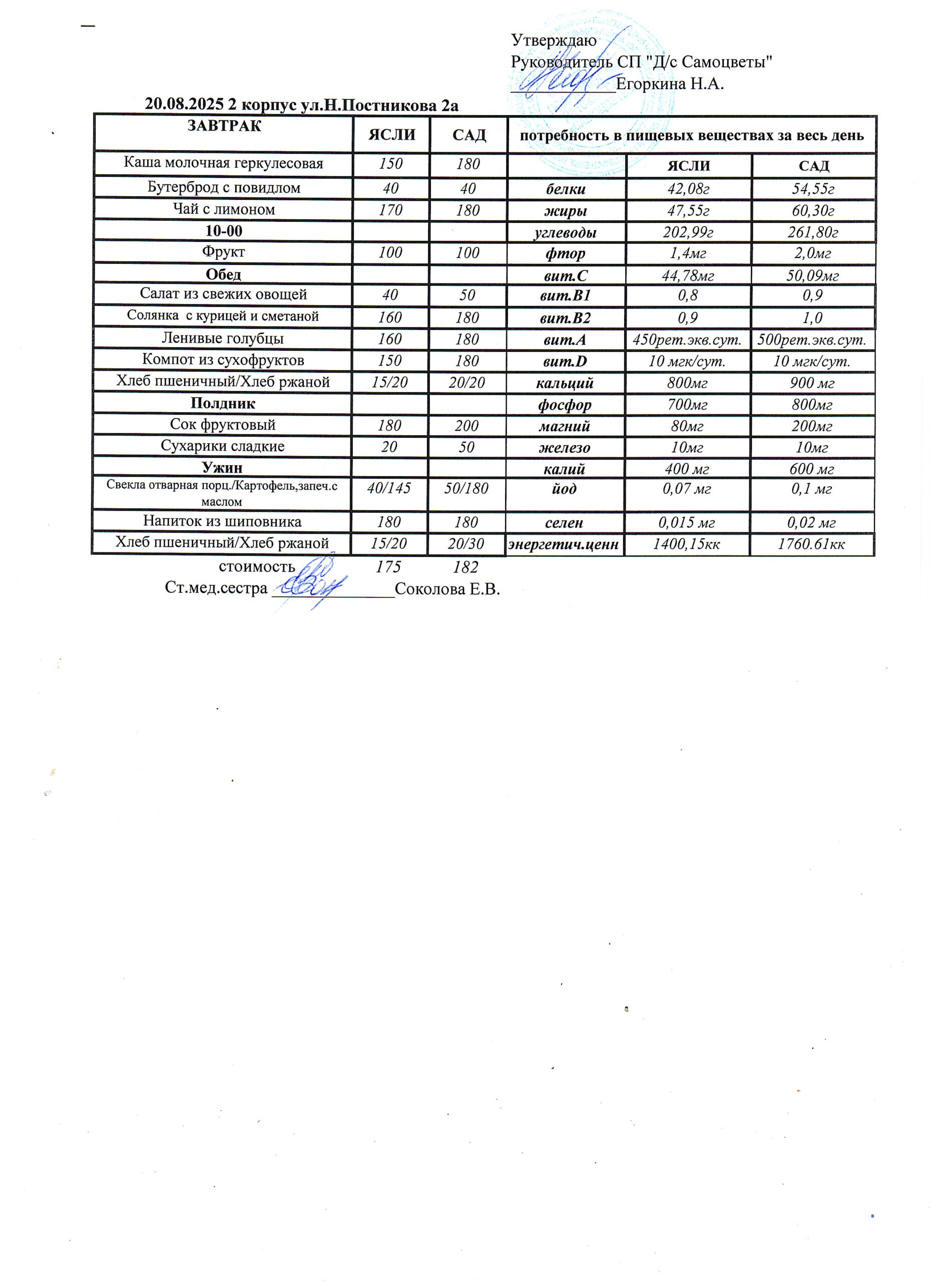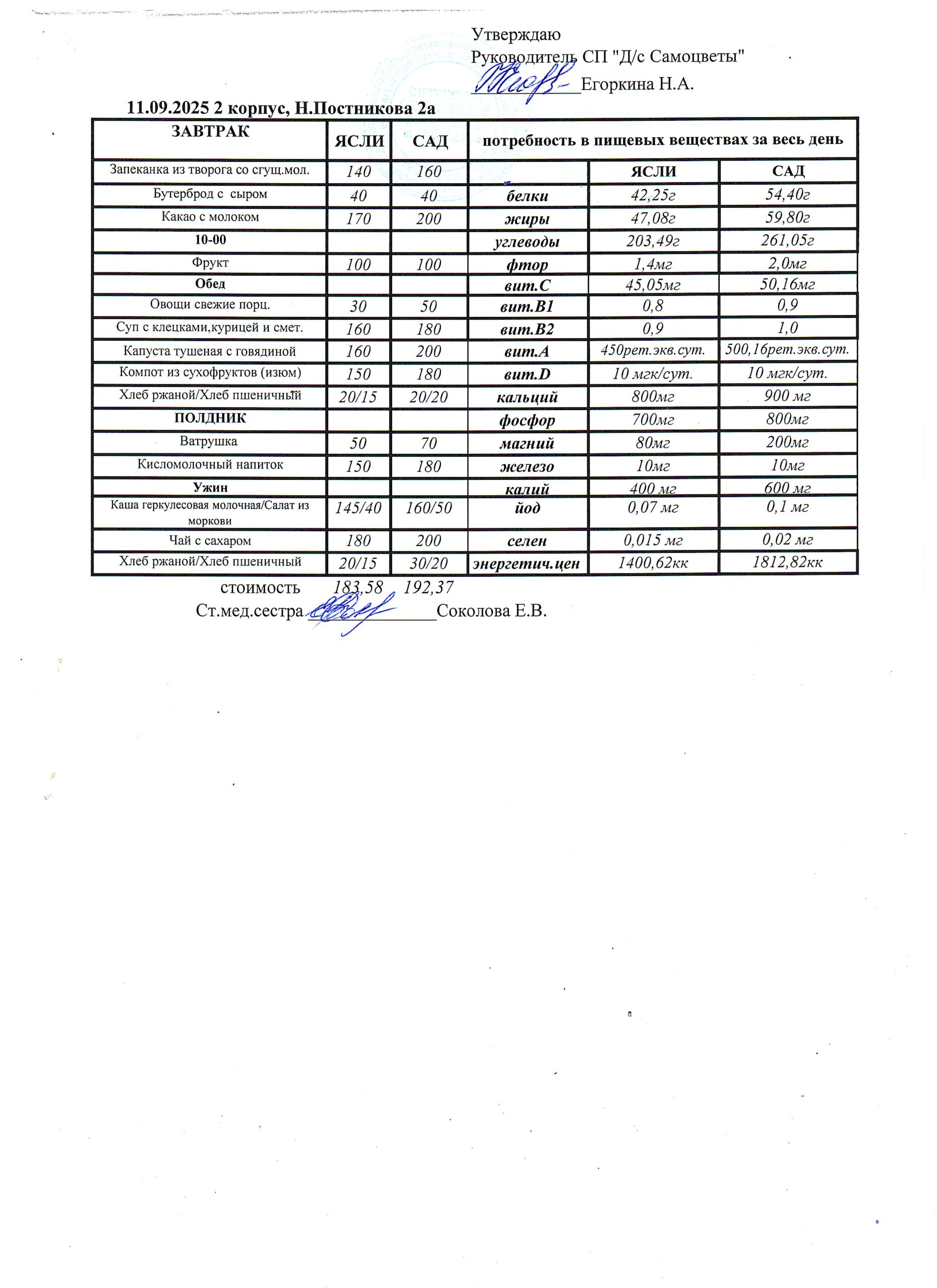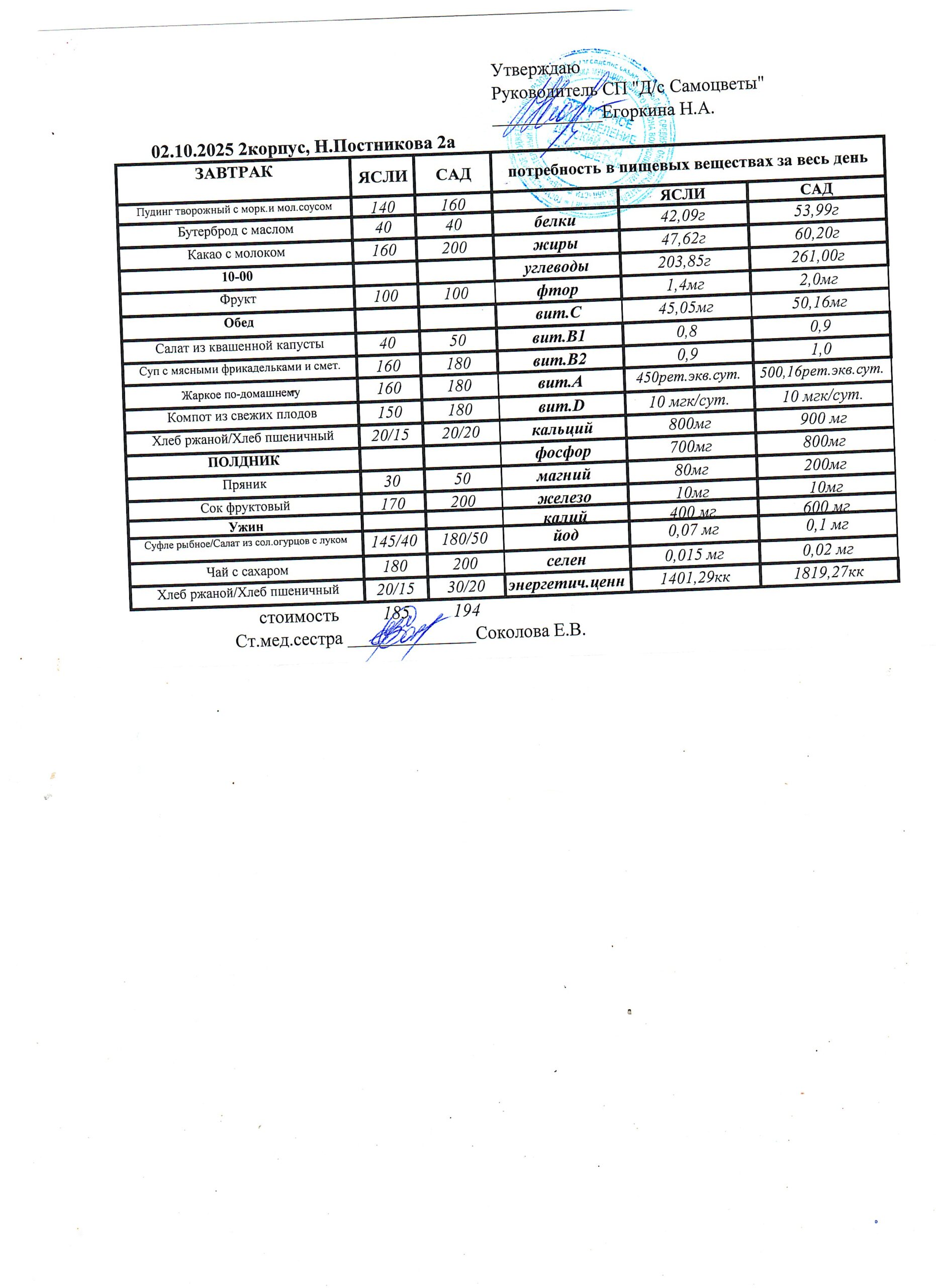 - октябрь 2025 год сп «Детский сад «Самоцветы» ул. Нестера Постникова 2а, корпус 2